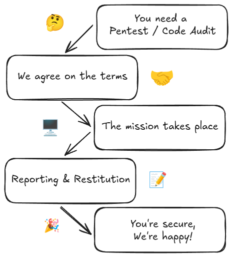 We agree on the number of days or weeks needed for the Code Audit or Pentest, a kick-off date, and a price